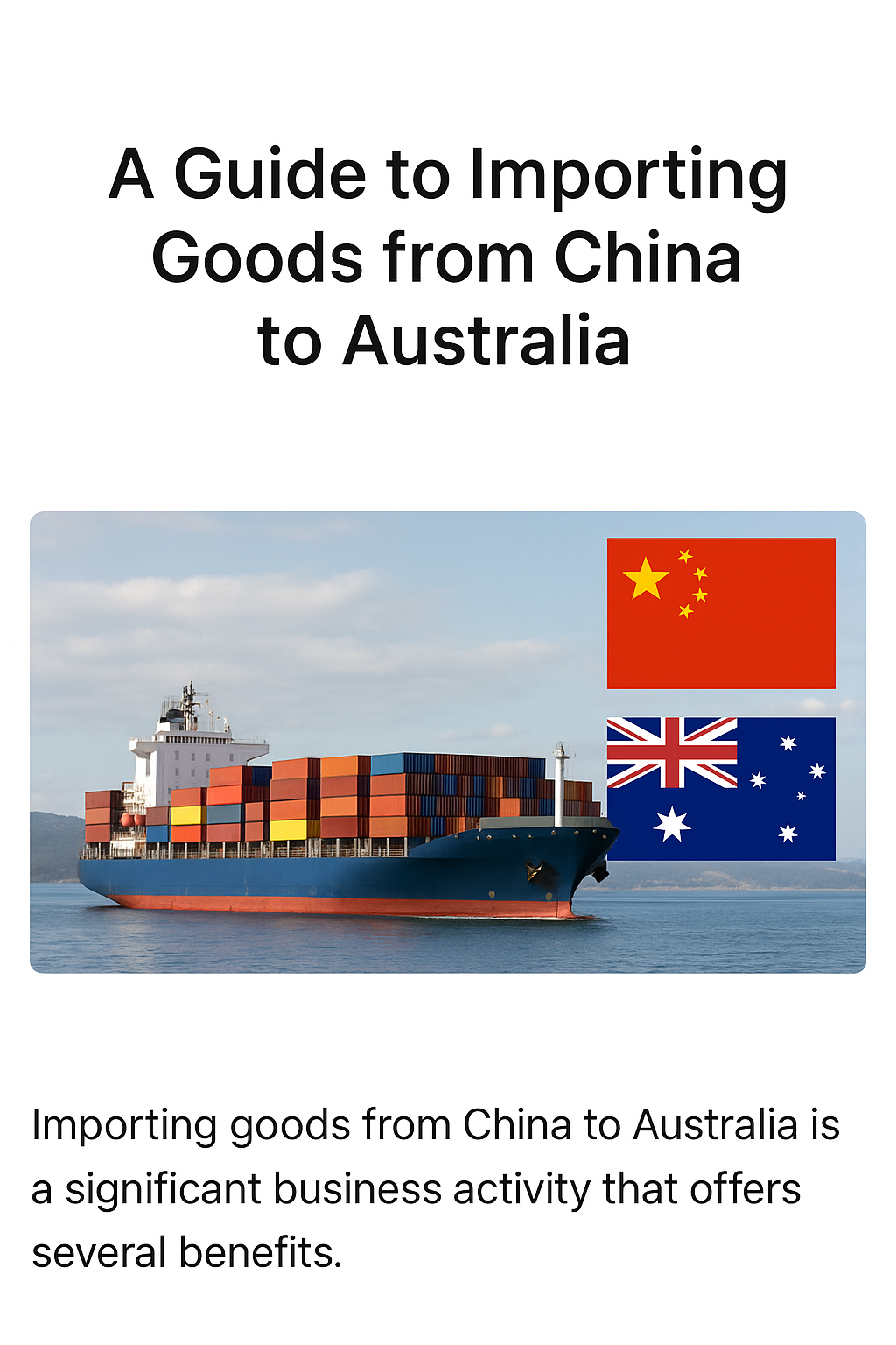 Importing goods from China to Australia offers excellent opportunities for businesses looking to access competitive pricing, diverse product ranges, and reliable manufacturing capabilities. To ensure a smooth import process, it’s important to understand logistics, customs regulations, and compliance requirements. This guide walks you through the key steps.