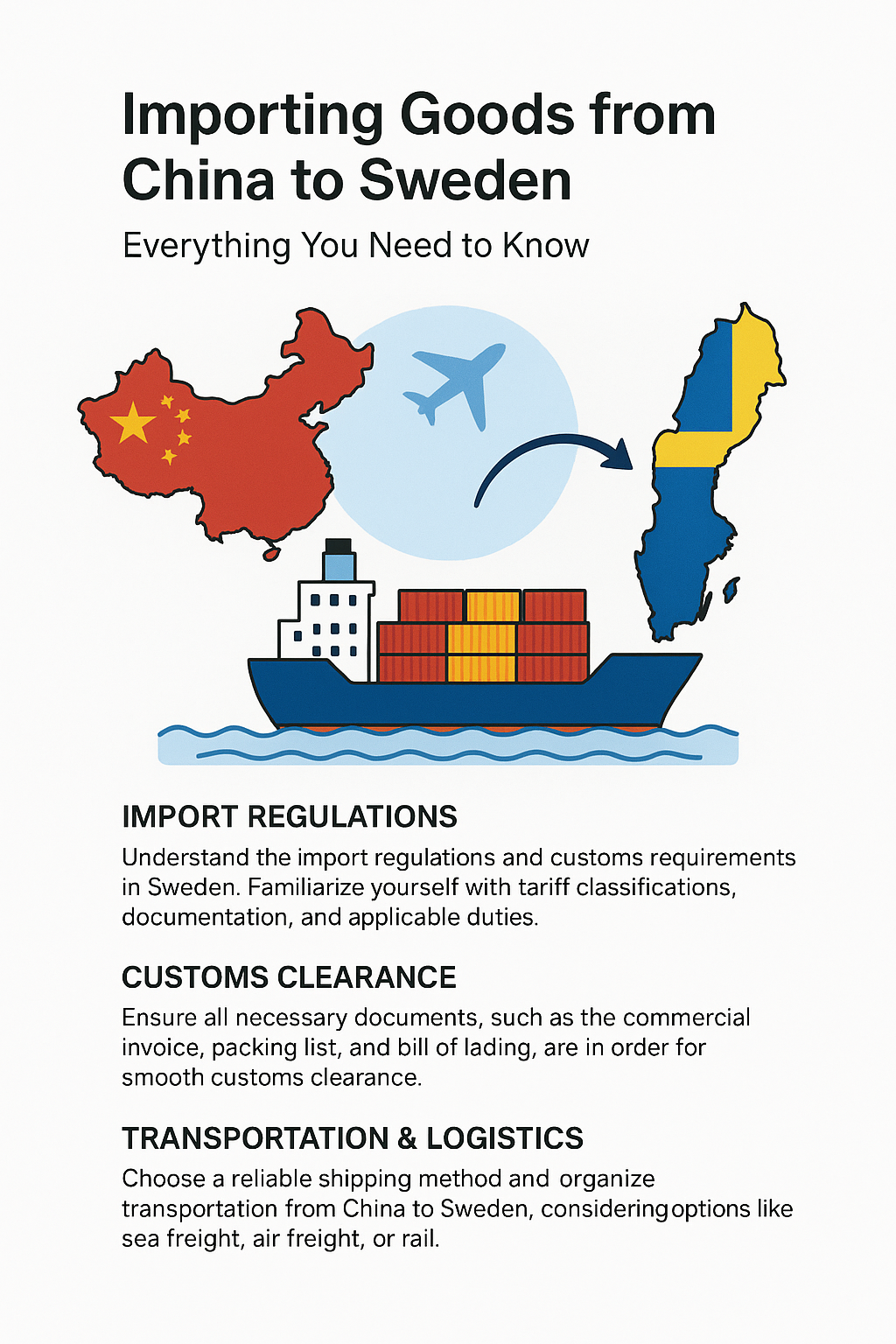 Importing goods from China to Sweden is a common practice for European businesses seeking competitive pricing and a wide range of products. However, Sweden, as part of the European Union, has strict regulatory, tax, and logistics requirements. Understanding these key points will help you avoid delays, extra costs, and compliance risks.